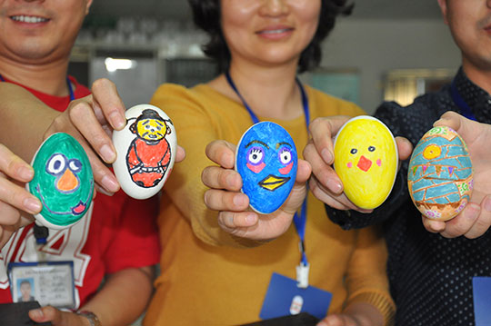 五月五日,立夏。一場生動有趣的畫蛋比賽在總公司辦公區(qū)舉行。分別來自各部門的十多名參賽選手,各人領(lǐng)取一只白色大鵝蛋,用公司提供的水彩筆在蛋上現(xiàn)場作創(chuàng)意畫?,F(xiàn)場還邀約員工20名前來觀摩選評。通過民主評選,最終選出了五只創(chuàng)意作品蛋,并頒發(fā)了精美禮品。