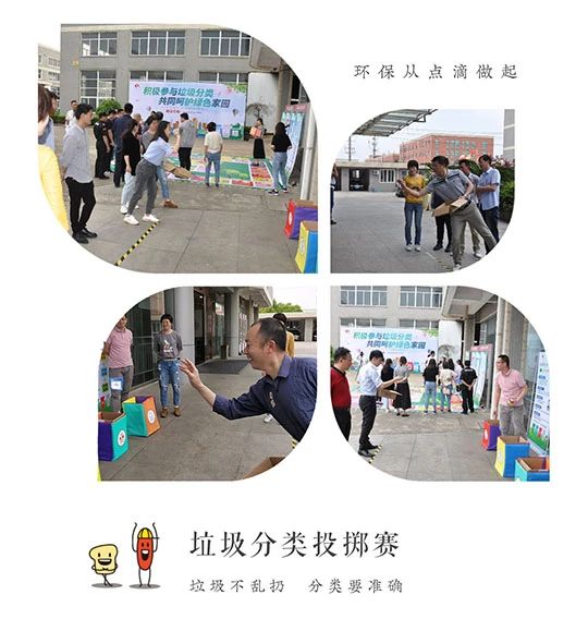 本年度的環(huán)保日主題活動(dòng),融匯了知識(shí)、趣味、合作、體育等多種元素,共組織了與垃圾分類相關(guān)的計(jì)時(shí)賽、投擲賽、飛行棋、知識(shí)競(jìng)賽搶答等四個(gè)項(xiàng)目,分區(qū)活動(dòng),并設(shè)有垃圾分類知識(shí)普及專欄展示區(qū),供大家邊玩邊學(xué)邊體驗(yàn),從實(shí)施垃圾分類的重要性,到各種垃圾如何進(jìn)行分類等方面,寓教于樂,引得陣陣圍觀:“這樣的宣傳方式既有意義又有趣,輕松易學(xué),真是一舉兩得。”